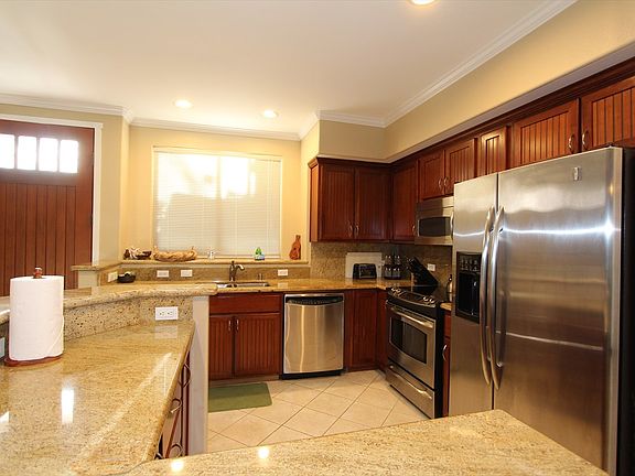 Enjoy the serenity and tranquility of this ground floor 2 bedroom, 2 bath fully furnished unit. This unit features tile floors, upgraded cabinetry, granite counter tops, central AC, a wine refrigerator, an outdoor grilling area on the lanai and an enclosed one car garage. The Palm Villas offers a large pool with a water fall, exercise facility and spa inside it’s desirable gated 44 unit community. Just outside these gates is the Mauna Lani Spa / Fitness and Tennis Club and with a short walk you’ll be at a beautiful white sandy beach. The Shops at Mauna Lani are just minutes away and offer luxury shopping and fine dining with Ruth Chris, Tommy Bahamas and others. Mauna Lani Resort is located along the Kohala Coastline with two 18 hole championship golf courses to choose from and golf clubhouse facilities. This unit is currently a popular vacation rental and is rented out through May, seller is asking all future bookings be honored by new owner.