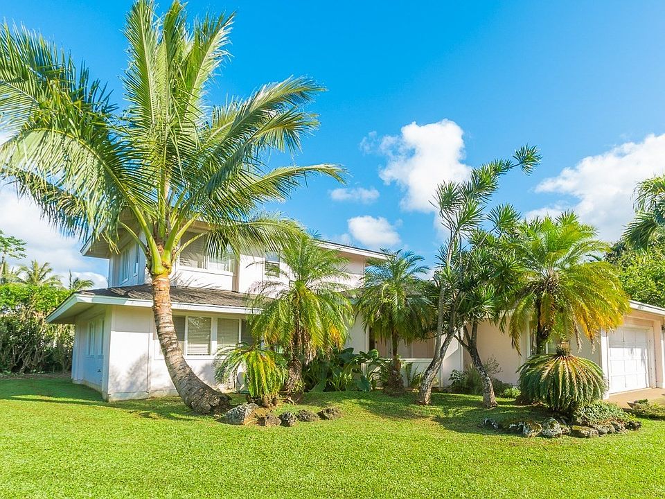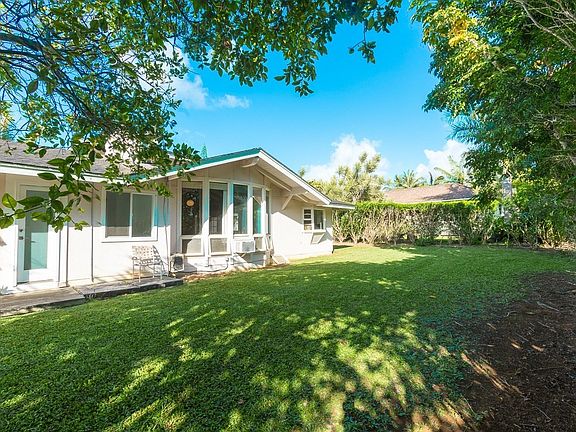 Spacious 4 bedroom, 2 bathroom home located in the resort community of Princeville. On the ground floor, this home offers a generous-sized living room with high vaulted ceilings and three bedrooms plus a full bath. There is also a bonus room that could make a great home office, hobby room or other use. Upstairs is the private master suite with a full bath. The tropical backyard is ideal for entertaining or just relaxing and enjoying life. A diamond in the rough just waiting for a little TLC. Great location, walk to Happy Talk Lounge, close to world class golf, tennis courts, shops and all the great amenities that Princeville is known for.