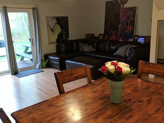Not your average unit at Stonehedge! Many recent updates and upgrades to include new maple kitchen with Corian counters and dovetail drawers, oak laminate flooring in dining and living rooms, new vinyl in kitchen, new carpets upstairs, both baths updated with new vanities, floors, light fixtures, etc. Upstairs bath features a new custom walk-in shower and granite top with undermount sink. This unit also features central heat via a natural gas boiler, and natural gas hot water heater. Great southern exposure off the living room slider and master bedroom! One pet (dog OR cat) permitted per unit.