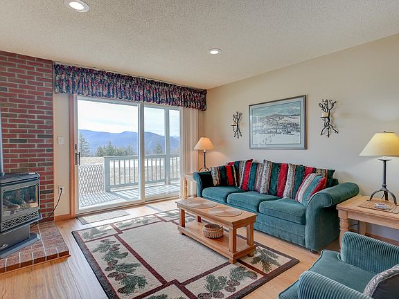 If you’ve been looking for a condo with some of the best White Mountain views around in one of low-tax Bartlett’s most desired associations, then this is the one for you. Step inside this light & airy unit and head down the hall to the open kitchen, which has plenty of storage & counter space, natural wood cabinets, and a large pass-through window open to the living space. The dining and living area is open and bright with a gas-log stove on a brick hearth for keeping toasty in the winter months, and a sliding door leading to the back deck that lets in natural light and cool breezes in the summer. The porch has plenty of space for grilling, and relaxing while overlooking the expansive views, or setting up a telescope for fantastic stargazing at night. The primary suite has more windows facing the mountains, and a full bathroom. The second bedroom is nicely sized and located off of the kitchen, with a shared full bath and stackable washer and dryer located in the hall. Only 15 minutes to Attitash and 10 to the dining, shopping, and restaurants of North Conway Village. Welcome home to Eagle Ridge!