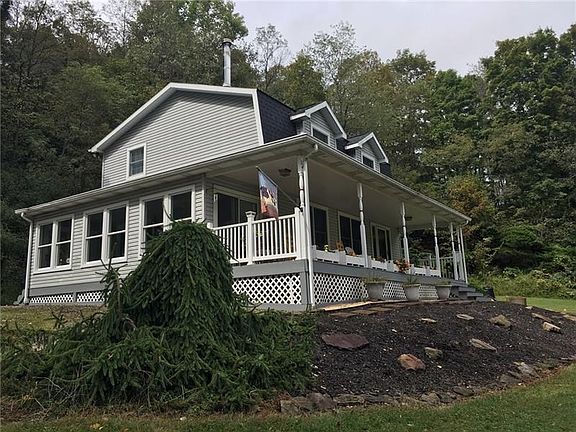 There is plenty of country ambiance in this extremely well-built, solid and well-maintained farmhouse approximately 24 years young! Home sits back along a beautiful country road and overlooks a stream and large pond. Enjoy peddling around in your peddleboat or paddling a kayak or fishing off of the dock. Or sit in your front porch rocker and enjoy the peace and quiet. Beautiful hardwood flooring on the main level to match the gorgeous wood trim and cabinetry! Located a short drive from the town of Ligonier, Linn Run State Park, Seven Springs and Hidden Valley ski resorts, and several golf clubs!! This home is great for full time living or weekend fun and could easily be added onto for even more room!