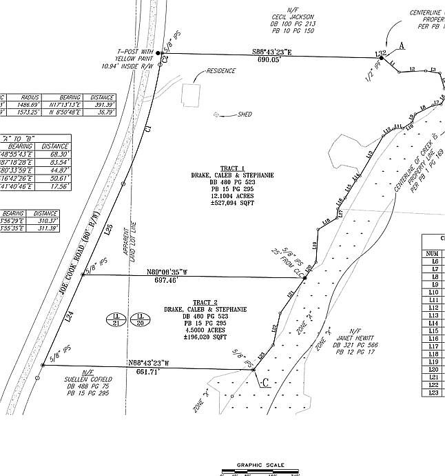 For sale by owner (tract 2 on survey) 4.5 acres with 310 feet of road frontage. Back line of the property is the creek. Centralhatchee school district. $65,000