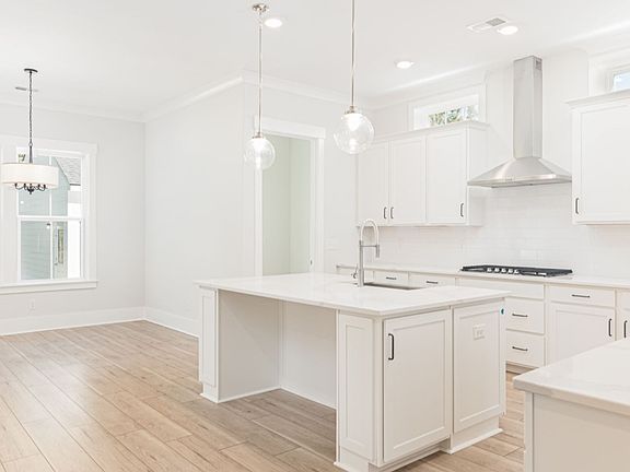 Open concept kitchen with large island opens to the breakfast and family room. First floor owner's suite with expansive walk-in closet, dual vanity, and shower.