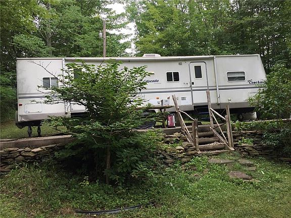 Come enjoy Summer days or Fall hunting season. 2 Bedroom 2004 Coachman 40 ft.RV all set up on a 20 x 40 poured pad. 110' drilled Well and 1000, gal Septic system, Electric all on the premises. Lot is partially wooded and some open field areas. State Lands with in 3 miles of property. 2nd stone pad/ with electric and septic lines on property.