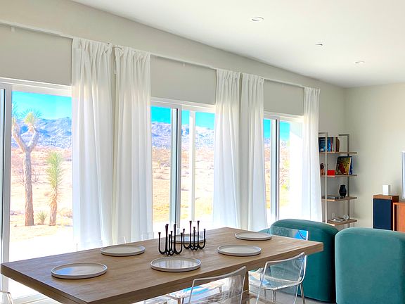 Incline at Crestview is a Hi-Desert butterfly roof modern home with unobstructed views of Joshua Tree National Park from all interior living spaces.