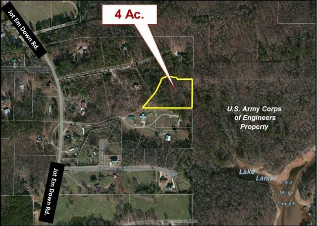 4 acre tract in North Forsyth with moderate to heavy topography. Secluded and wooded for private home or homesites. Contiguous to Corps of Engineers property along northern boundary and close to Lake Lanier.