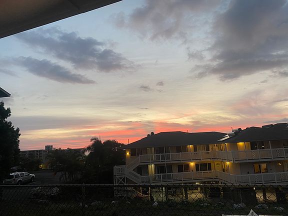 Upstairs unit with some ocean views from living room, lanai and bedroom. Inside laundry hook up for stack. Two uncovered parking spaces. Located at the end of the street. Close to shopping, restaurants and beaches.