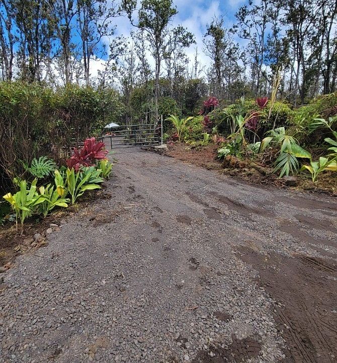 This beautiful piece of paradise is ready for you to call home. With new tasteful updates and interesting hidden gems that show this 3 acre property's incredible potential. On desirable 60' Kaleponi road that provides for safe travel in 2 lanes and allows emergency vehicle access. Recent improvements include extensive ornamental landscaping in front of the new gates, as well as a variety of edibles being established alongside the freshly rocked driveway. Coconut palms, avocado, ice cream bean, and plentiful banana trees, citrus, dragon fruit and lilikoi too! You'll always have the chance to grab something fresh on the way in or out. Bring your ideas for future development! Ample opportunities to build and/or garden in the first clearing off the driveway.*Hidden gems* * Follow the mossy old rock wall along the... *500 to 600 ft MORE of overgrown driveway that stretches past the middle of the property. *Another larger clearing at the end of the driveway and possible house pad. Marked with a 40-50 ft palm tree. * Current parking spot behind gates can easily be expanded to create a circular driveway. Clearing has been done.