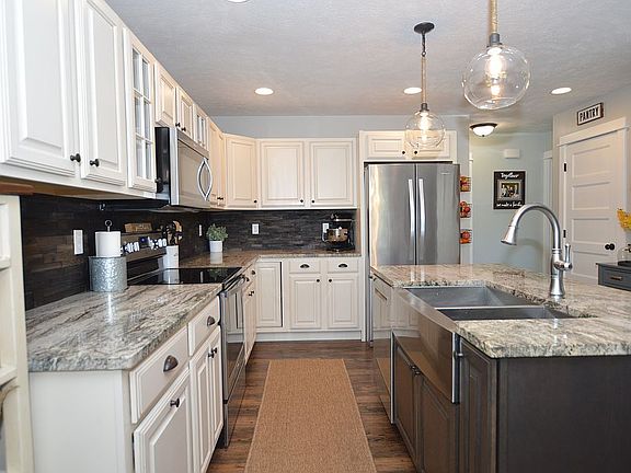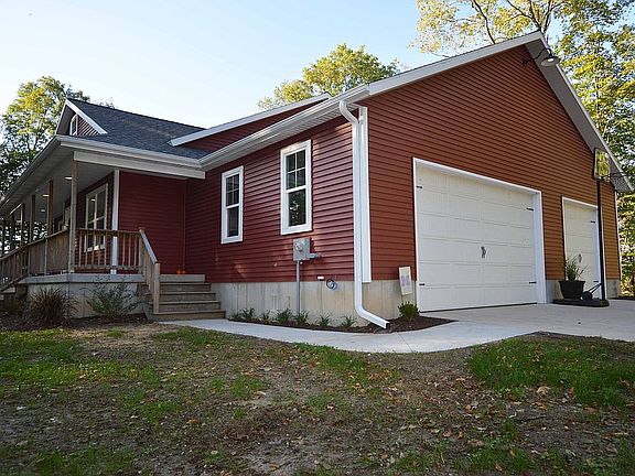 Gorgeous Ranch built in 2016 on 6.26 acres of land with private setting back from road. Property is already split for second lot that can be sold. 2 beds and 2 full baths on main. Another 2 beds and a full bath in lower level with 1100 sq ft finished. All stainless appliances, beautiful luxury laminate wood floors throughout most of the main, trayed ceiling in family room. Open concept, awe inspiring kitchen with granite counters, large farm sink in island, soft close drawers, cream cabinetry, and amazing fixtures. Large front porch as well as private porch in rear through sliding door from dining room. Master with en suite thru barn door, separate double vanity, huge walk in closet for him/her. Amazing ceramic tile wilk-in shower. 2 stall garage and additional 10x13 shed. Country living with easy 20 minute commute to Grand Rapid's major retail stores. Last year updates: New kitchen backsplash, bosch dishwasher, all new window treatments, purchased water softener, new pellet stove that can heat whole house, shed, added seamless gutters, two new retaining walls, all new landscaping, poured new concrete walkway from driveway to front porch, redid driveway with turn around, removed 65 trees and more than doubled the size of yard. No association or rules. This home needs no work and is move in ready.