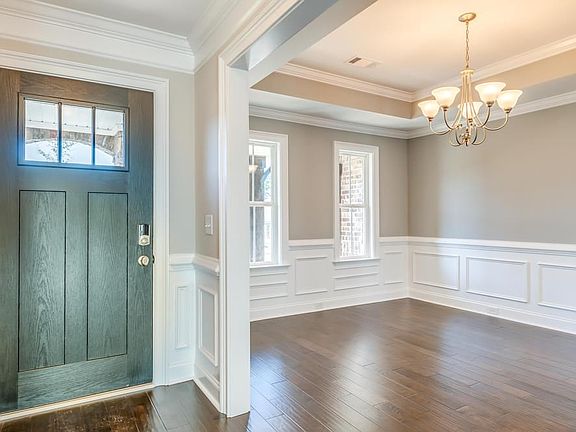 The "Newport" is a Traditional-style house that is sure to please. This 4 bedroom 2 bath plan begins with the refined foyer entry way that joins to the formal dining room rich with hardwood flooring. The large great room area with trey ceiling is complete with a fireplace and opens into the spacious kitchen finished with granite countertops and a large island. The master quarters provides a spacious walk in closet and a bathroom area complete with double granite vanities, garden/soaking tub, and tiled shower with glass door. The additional 3 bedrooms are spacious and perfect for family living. This one story design will not disappoint!