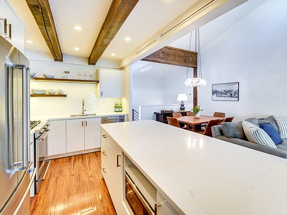Ideally located for in-town living and year round activities. Walk to Main St. and down, and River Run lodge for gondola / lifts, hiking and events. Tastefully updated, vaulting ceilings, nice natural light. Bonus loft accessible via ladder adds flexible work or sleep space. New appliances, washer / dryer in unit. One car detached garage for all your toys and gear.