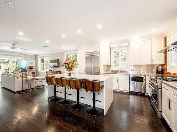 Convenient outdoor showerQuartz waterfall islandDouble french doorsImmense spa-styled bathLush tropical landscapingOpen-concept family roomStackable washer and dryer