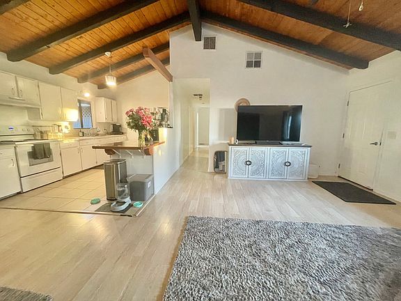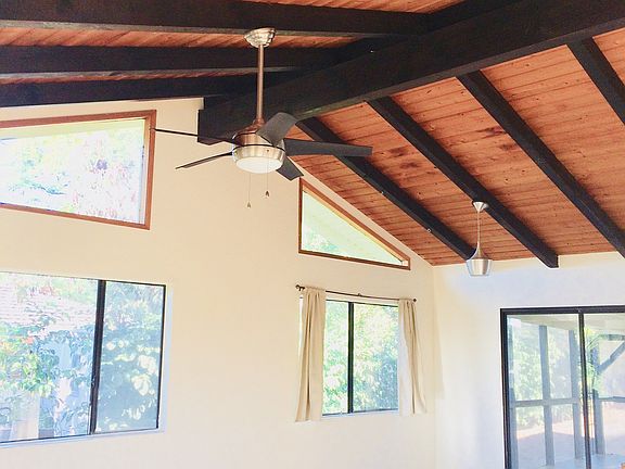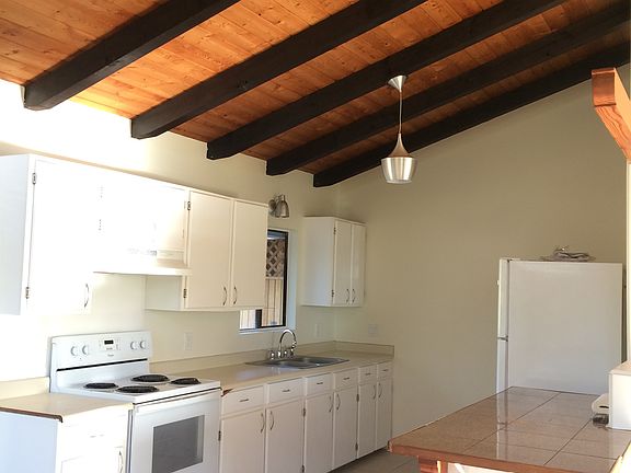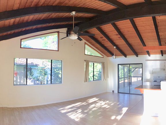 Features vaulted ceilings, open kitchen, unfurnished, ceiling fans, AC, screened bonus room, large fenced yard with fruit trees & garden space, washer/dryer hookups, and off street covered parking.