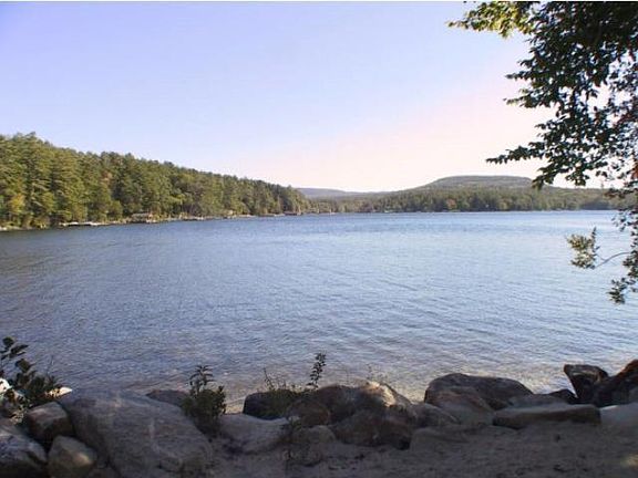 Listed by Nicole Watkins. (603) 707-7575. Ask Nicole for the preliminary architectural drawings and color brochure. Wolfeboro NH - Level and gently sloping Wolfeboro Winnipesaukee land parcel is ideal for building your dream home near all Wolfeboro amenities. A draft of an architectural drawing for a 5 bedroom lakehouse with a walk-out lower level has been done. The large parcel with 10.41 acres with 220 feet of waterfront directly on Winnipesaukee would accommodate those seeking privacy, wonderful views, and room to play. This property has southeasterly exposure, a partially installed U-shaped dock, and dramatic lake and mountain views. This great location is in South Wolfeboro for easy access from the highway. Ride your golf cart or take a relaxing stroll to the golf course to enjoy golf and social gatherings at the golf course. This quiet bay is ideal for kayaking and swimming.
