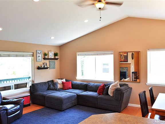 Beautifully updated home on a quiet Ferndale Street. Open kitchen, dining area and living room along with a downstairs family room and finished bonus room which could be bedroom number 4. Gas fireplace, oak/bamboo floors and kitchen island. Deck off the master and kitchen along with a fully fenced yard. Black Out Curtains in Master. Wonderful view of Mt Baker