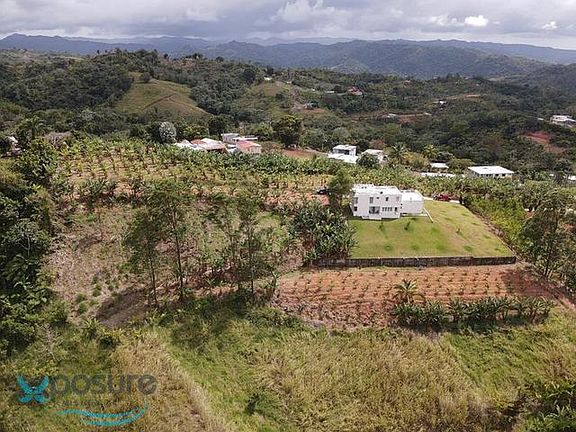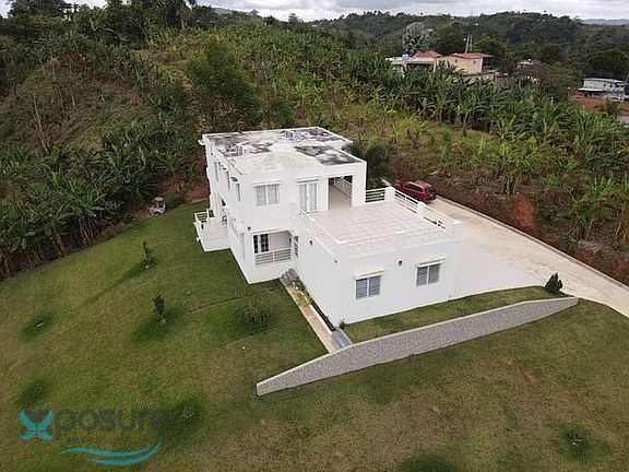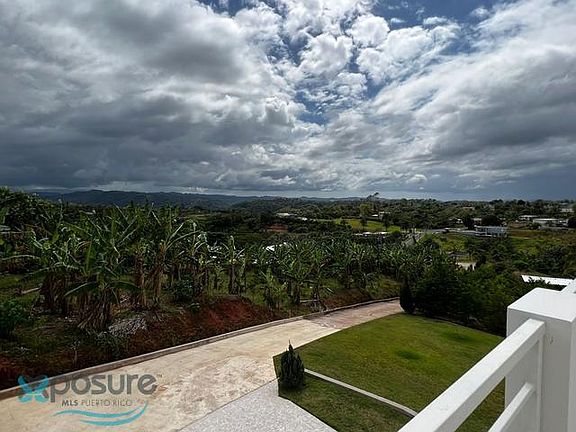 Beautiful property almost 4 cuerdas of land, multiple fruit trees such as bananas, soursops, pineapples among others. Two-tier; first level has a comfortable living room, dining room, kitchen, several balconies with beautiful views of the mountains, large kitchen, stainless steel appliances, half bathroom, laundry area. Second level, spacious master bedroom with cathedral ceiling, walking closet and comfortable bathroom, and large balcony with a view of the mountains. In addition two additional comfortable rooms, an office, and an additional bathroom. Large terrace on the second level, spectacular view of the mountains. Two garages with automatic doors, ample space for more vehicles, decorative cement garage entrance floor. In addition, a private entrance with an electric gate and a majestic drive in from the road to the top of that mountain to reach the house..