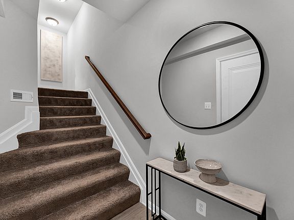 Be welcomed by the cozy foyer when entering the Bethany, the stairs give you the option of ascending to the first floor or to access the rear, lower level of the home, and a finished recreation room with an attached powder room, utility room, and access to an optional finished basement.Climbing the stairs to the first floor leads you to an expansive open floor plan that accommodates a Great Room, Kitchen, and Dining area. The first level also features a powder room and storage closet set to the side of the Great Room. This home design offers the option of converting the storage area into a tech center for an inconspicuous home office or adding a pantry. Additional options include a gas fireplace or built-in shelving in the Great Room.The second floor includes the Owner's Suite, two additional bedrooms, a hall bath, and a laundry room centrally located. The private Owner's Suite features an expansive Owner's Bedroom, a walk-in closet, and an ensuite Owner's Bath. Additional Owner's Bath options include a Super Bath, with the added pleasure of a large soaking tub and shower stall, or Roman Bath, with a walk-in shower with a tiled bench seat.
