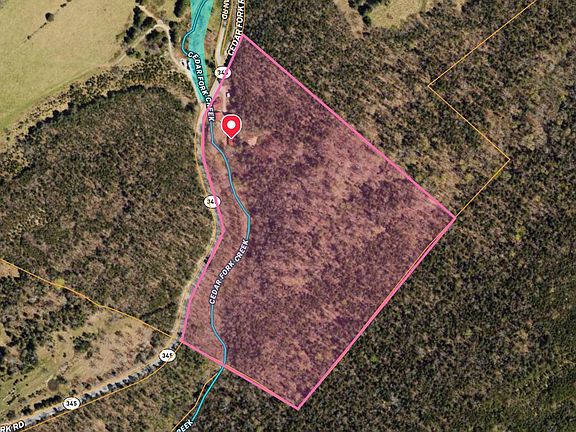 This amazing 18+ Acres is being parceled off from the original 66ac parcel and is LOT# 1. located off of nice 2 lane paved road. Waterfront with gorgeous views of Cedar Fork Creek with beautiful Large rock formations! NO HOA, NO DEED restrictions! It Has power, septic and spring fed water. A spacious plot that offers a mix of farm and wooded areas, perfect for agricultural, Hunting or recreational purposes. Several level buildable sites with amazing views of the mountains and surrounding rule area.. House/Hunting Cabin on property (Needs TLC): 1 shop: provides ample storage or space for home business, equipment, or projects. 1 Barn: This needs TLC and provides ample storage or space for livestock, making the property ideal for farming or large-scale hobbies. Utilities On-Site: Having utilities already connected is a huge plus! A private septic system offers independence from city utilities, contributing to a more self-sufficient lifestyle. Spring fed water with pump. This property is Ideal for crafts, repairs, or DIY projects, adding functionality to the property. Block walls on the Shop/Garage: A solid structure offering secure parking and extra storage. Fenced-In Ares is Suitable for livestock, pets, or creating a garden. With its private, rural feel, yet close to town, providing access to local services and amenities. Property has an abundance of wildlife including, Deer, Wild Turkey, Birds and so much more. This mix of landscape is great for someone looking to Homestead, Family Compound, farm, hunt, or enjoy the natural beauty of a wooded area while having open fields. Flowing Creek adds beauty and a natural water source, possibly supporting irrigation or adding to the tranquility of the property. If you enjoy outdoor activities, several trails offers an exciting recreational option. This property was not affected by the recent storms. Don't miss this one!