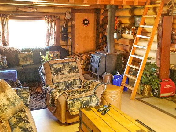 Remote recreational lake front log cabin property with year round road access, Lake Louise frontage with a dock. Located just a short distance from Lake Louise Lodge.Total of 1,736 square feet of buildings and improvements: