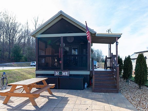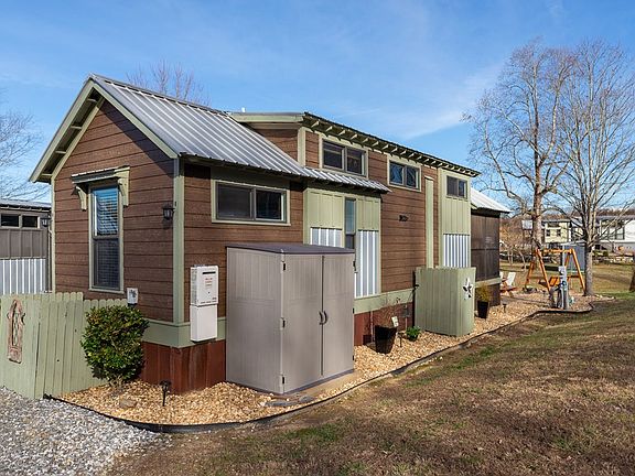 Income-generating turnkey rental or primary residence in the gated RV/Tiny home community, Waterside at Blue Ridge near Lake Blue Ridge. welcome to your cozy retreat nestled in the North Georgia mountains, a few miles away from the charming town of Blue Ridge. Meticulously upgraded tiny home with landscaped backyard oasis featuring a custom-built fire pit. Relax to the sounds of a nearby brook. The home has a covered all-seasons screened-in deck. Step into the living room with cathedral ceiling and indoor fireplace. Kitchen has new gas range, new granite counters and backsplash, full size fridge/freezer combo, microwave. The bedroom offers built-in dresser and two closets. You will also find additional sleeping arrangements—custom-built twin bunk bed and loft area with a queen size bed. The full bathroom has been updated with Indian Marble counters, and has a shower/tub combo. Enjoy the benefit of in-home laundry facilities with a washer/dryer combo unit, making laundry day a breeze. New mini split AC/heating units. Endless possibilities: investment property, vacation getaway, or full-time residence. Community amenities include: seasonal pool, clubhouse, playground, hot tub, pizza ovens, sports courts, fire pits, dog park, ponds, and more. Nearby attractions: hiking trails, waterfalls, wineries, Lake Blue Ridge, Toccoa River, Harrah's casino in Murphy, NC, and a plethora of shopping and dining options in downtown Blue Ridge. Sold completely furnished. Recent survey available. Don't miss out on this enchanting tiny home in the heart of North Georgia's beauty.