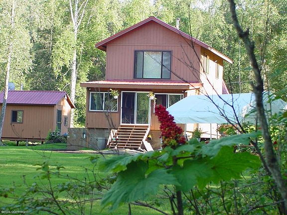 Walk out your front door to excellent fishing on the Talkeetna River! Immaculate 3 bd/1 ba home w/ huge kitchen/dining area featuring custom knotty pine cabinets, comfortable living rm, laundry area, bonus area, view wildlife from enclosed porch on 5 acres by the Talkeetna River. Self-generated power provided by 6.5KW diesel generator & battery backup system. additional info in supplementOther amenities include 2 rm sauna w/ deck, greenhouse, hot house, insulated 16X24 workshop, generator bldg.,vegetable & flower gardens, fruit trees, manicured lawn. Almost all furnishings, equipment, & tools will stay with home including fixed site wireless phone system & dish TV. Remote living doesn't have to mean roughing it! Live off the grid in comfort & style. Laminate flooring on 1st & 2nd floor, Kitchen & dining area is vinyl. 2 Belgium Efel Stoves Not included in sale: Dining Rm Table & chairs, convection oven, propane freezer, 1 brass bed, New John Deere riding lawnmower