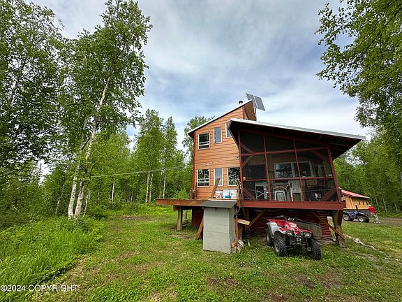 This remarkable property is located just 10 trail miles North of Talkeetna. Situated in the remote community of Chase it has been meticulously crafted and cherished by a skilled artisan. The owners passion for the land is evident in every building, garden and handcrafted project. Accessible year-round via Alaska Rail Road,ATV, or snow-machine.If your looking for remote living and want a COMPLETE PACKAGE, this is it! There are 4 cabins, a large shop, sauna, and many other outbuildings. All craftily built and thoughtfully laid out across the property bluff to better enjoy the stunning DENALI and SUSITNA RIVER VIEWS. This 9.93 acre BLUFF parcel has been enhanced with well cut trails, garden beds, apple orchard, hundreds of planted trees from Ponderosa pines, blue spruce, and tasty crabapple trees, all adding to the beauty of the already beautiful boreal Alaskan forest. The owners passion for the land is evident in every building, garden and handcrafted project. The main cabin offers a well stocked kitchen, comfortable living area with book shelves overflowing with Alaskan books, and a cozy wood stove. A large spacious loft bedroom with magnificent views and more books. There is a washing machine, propane stove and refrigerator for convenience. It also includes a recently professionally drilled well for water access near the main cabin. The rustic bunkhouse (12x24) offers ample sleeping space and a cozy oil stove. It has its own out house and majestic views over the bluff to the river below. The artist cabin (12x16) is a serene and inspiring space for creativity! It offers beautiful views and a peaceful environment, perfect for hobbies. The wood stove adds warmth and comfort. The original historic cabin adds a unique charm and a sense of history to the property. Its status as a relic of the past whispers stories it may beg to tell! It's currently full of milled lumber, burls, unique finds and various construction materials that could offer opportunities for more creative projects. The hand-scribed sauna/shower house sourced from the trees on-site spaciously includes a roomy dressing room and ample seating for friends. The large pull through Shop features, wood storage, tool room, and enough storage for the tractor, snowmachines, trailers, atv' s and etc.. The following is INCLUDED IN PRICE: -Mid-90's Polaris 450-2 stroke ATV. Bored to 500. -2010 Yamaha 550 Grizzly ATV W/wagon -2010 Skidoo long track 550 W/Otter sled -2015 Skidoo long track 550 W/Northern sled - (2) Honda 3000 watt generators. Linkable -Honda 100000 watt generator -Hobart 125 wire feed welder w/wite-tips -Dewalt 12" compound sliding saw. -Dewalt 12" thickness planner -Grizzly 6" jointer -drill press (2) Johnsrude ch see in saws 5522 -Skill saw 7-1/4" -Sawsall -Hilte hammer drill -Assorted routers -Assorted hand tools for dirt and wood working -Stile brush saw w/weed wacker attachment -assorted size sockets and drive sockets -assorted sized box and open end wrenches. -assorted engine oils and fluids. -Diesel fuel -spare -gas-spare -lamp oil-spare -propane-spare -three years of cut, split and stacked fire wood - Kubota L3800 HST tractor with front end loader, back hoe, pallet forks, canopy, three point attachments, box & back blade, rock rack, logging tongs, and numerous filters, belts, fluids, with less than 600 hours on tier 3 engine. -Woodmizer LT 15 Start band sawmill with new blades, extra track allowing for a 17'6" cut length. Less than 200 hours with spare belts and parts. This is just a sampling of what comes included, please call your favorite Agent for more details and appointment for viewing.