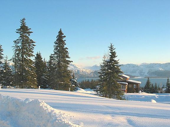 - View description: Bay, Glacier, Mountain(s), Spit, Unobstructed