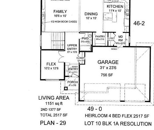 John Hagmeier's ''Heirloom'' Plan. 2 story great room with 1/2 wall built in signature bookcase. Guest room or Study and full bath on main living level. Tiles Mud room and Entry with built in bench and closets. Kitchen with Large ''costco'' pantry, center island and solid surface counter tops. Master bedroom with double doors, private bath with whirlpool tub, separate tiled shower, his and her.... vanity and a large 10.5 * 6 walk in closet with mixed shelving and polls. Laundry Room with large linen closet and loft area up. Large 14*10 deck off dining room.