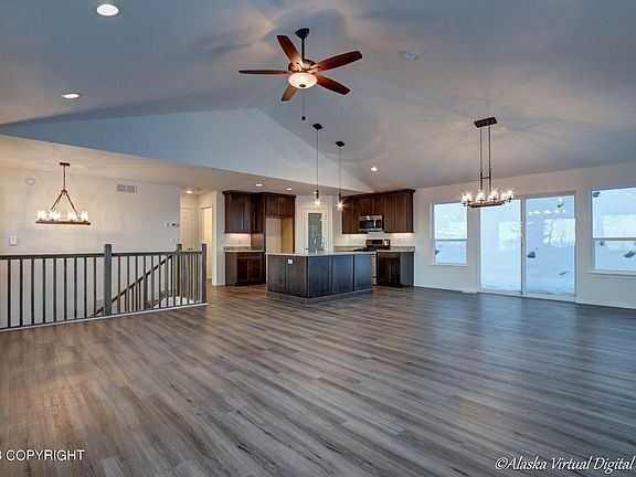 Brand New build by Troy Davis Homes. Open Great-room w/over 40'of windows to enjoy the Alaska scenery. Luxury vinyl plank flooring, kitchen features stainless steel appliances, granite or quartz counters, breakfast bar & corner pantry. Main floor master w/coffered ceilings, dual lavs, soaker tub, seperate shower & WIC. 2 beds, bath & laundry on lower level. Oversized 553 SF garage. PHOTOS SIMILAR.Buyer to make all selections/options and upgrades. Easy commute location in Chugiak's newest 12 Lot subdivision. Other lots and floor plans available.