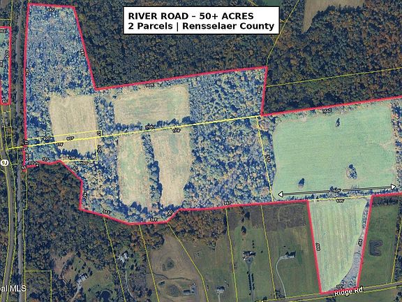 Versatile 50+ acre property across two parcels in the Townships of Stuyvesant and Schodack Landing, offering development potential, farmland, and municipal infrastructure.
