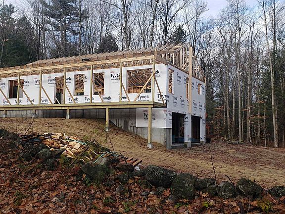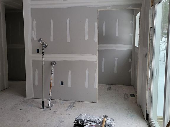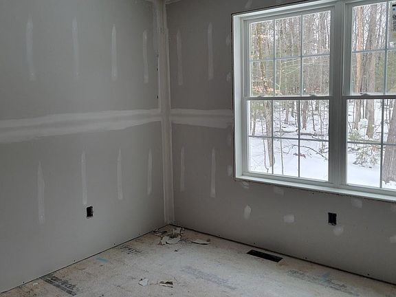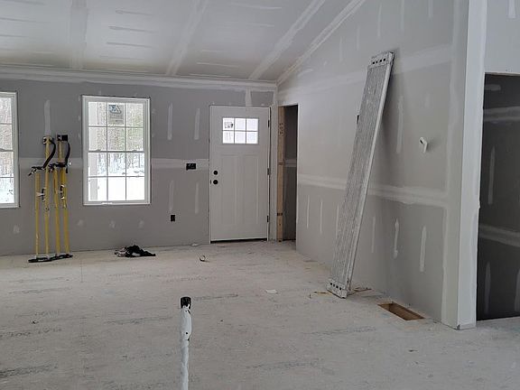 At sheetrock stage, windows in, deck framed... moving forward... 4 bedroom septic design offers expansion possibilites. Open concept one level living, with master suite at one end with large walkin closet and full master bath; 2 other bedrooms at other end with full bath; hot air heat with central air, kitchen with granite counters and white shaker style cabinets open to dining with sliders to 10x10 deck; vinyl plank flooring with carpet in bedrooms, 6x50 full farmers porch along front of home and 28x24 two car garage under on gable end. Efficient and ready for buyer to choose their colors ...