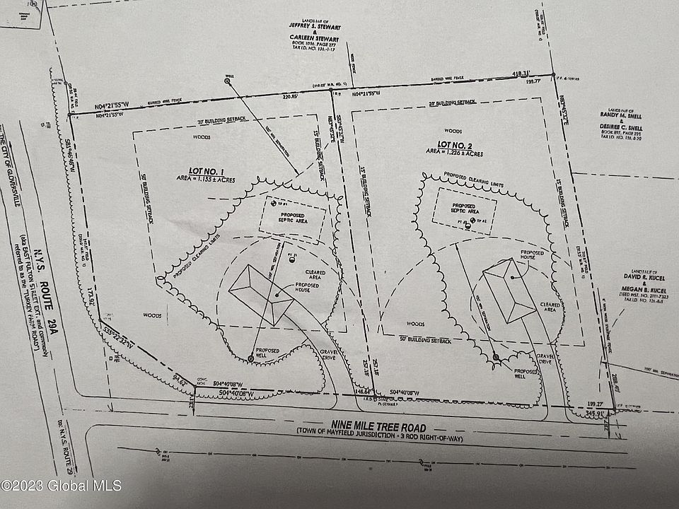 2.381 +/- Acres Available Now for your Building lot in the Town of Mayfield, Mayfield School District, County of Fulton. The Great Sacandaga Lake is nearby for you to enjoy as well as the Adirondack Park. Surveyed parcel with road frontage on both State Highway 29A & Nine Mile Tree Road. There are 2 good Gravel Base Driveways in place on the lot. Property has been perc tested & has a good sandy base that should allow for a conventional septic system. Annual taxes of $725. Seller indicates Doublewides are approved to be placed on this building lot as well. Property would require private well & private septic. GPS 275 Nine Mile Tree Road and Look for the signs.
