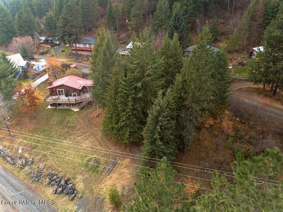 Secondary waterfront with views of Lake Coeur d' Alene. A 20' boat slip included! . Community water & sewer, county paved roads within 1/2 mile of the cabin, year round access, lots of parking, boat access is a short drive down the hill. Boat launch at the community beach and park.
