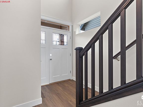 $8,000 towards buyer's allowable closing costs with builder preferred lender. South High School district. Light and bright two-story entry and two-story living with wall of windows. Lg kitchen island with quartz countertops and tile backsplash. ''Costco'' size corner pantry in the kitchen. Laminate flooring throughout main living level. 3 beds, 2 baths & laundry upstairs. Walk over the bridge to