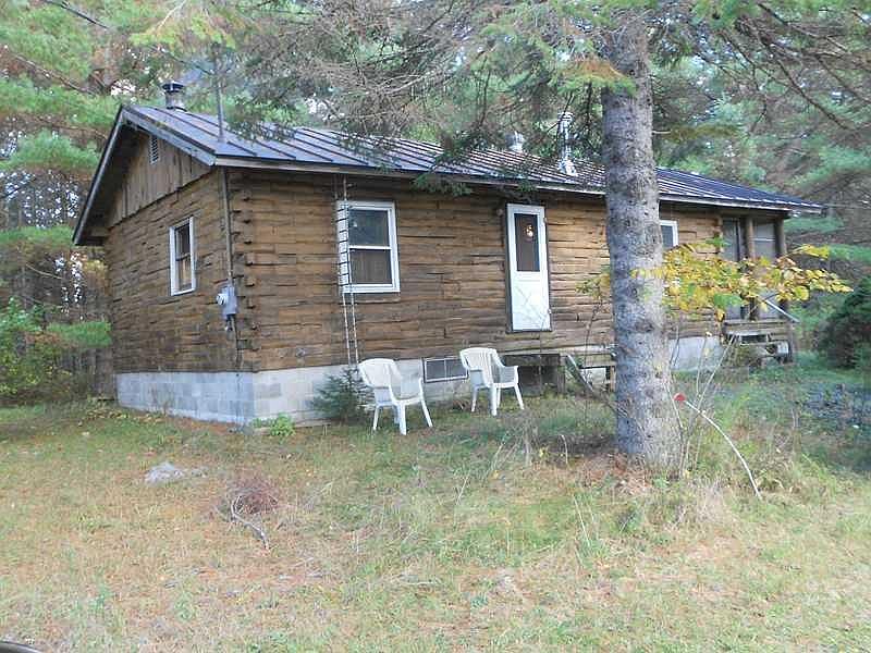Comfortable log cabin and guest house on Monson Pond Stream has 18.6 acres, tall pines, lovely lot. Log cabin ahs full basement, kitchen-living room, two bedrooms, bath plus expansion room in basement. Also, nice guest cabin has electricity and wd heat.