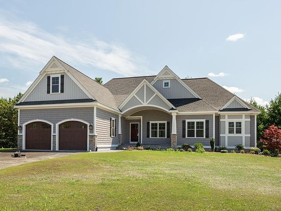 Loving Luxurious Living at Brigham Hill Estates! It starts with an idea, which leads to drawing plans, then creating a dream list of details and amenities: i.e. Architectural nuances with gables & overhanging eaves, blending stone facades with vinyl shake shingles & clapboard to create a stunning exterior masterpiece. There is nothing more beautiful in todays designer home kitchens then the breathtakingly beautiful quartz countertops our clients are selecting to cover a their huge center islands with seating & kitchen dining area. It's is where everyone gathers and they will be drooling over this kitchen at this Ranch home. More clients are also trending towards the sleek new black stainless appliances, barn sliding doors, the ole fashion pantry, industrial lighting, warm dark tones for hardwood flooring stain.Screening in the porches, adding a wine cellar, finishing the lower level for in-law quarters or media rooms. Live the dream! Let our New Home Team show you how.