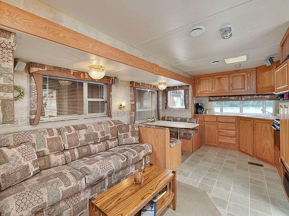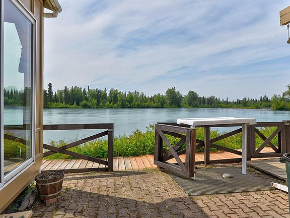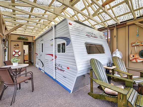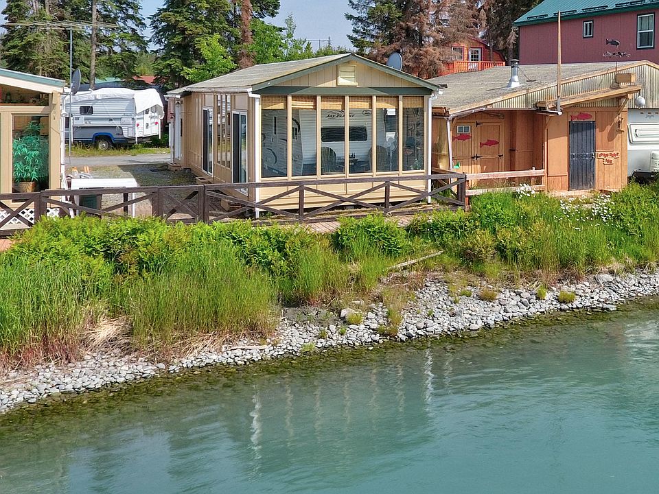 KENAI RIVERFRONT GETAWAY, Gated POACHER'S COVE Planned Unit Dev. 2004 1 bed,1 bath Jayco Travel trailer-purchased new for this location & never used for travel. Enclosed inside a cabin-like structure w/front sunroom,bunk house,3/4 bath & arctic entry.2 sliding doors,gravel parking spot/picnic area, shared cleaning table & boat tie up. 2 boat launches, fenced boat yard & 2003 Alumaweld boat w/motor