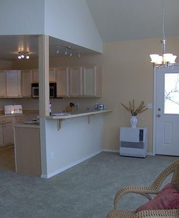 New chalet style home tucked into a beautiful wooded area. This energy efficient home has upgrades usually found in custom construction. Jacuzzi tub, stainless steel appliances, vaulted ceilings and private master suite. Large windows and spacious deck deck merge indoor and outdoor living. Move in with time to set up holiday decorations.