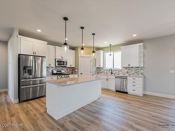 Regal Quality Homes presents this beautiful ranch home close to town in Wasilla! This home boasts 1922 SQFT, 4 Bed, 2 Bath and 3 Car Garage. You'll notice the amazing walk in pantry/double pantry, upgraded cabinets, tiled shower and separate soaker in master, quartz counters throughout the home, covered front deck, mud room with custom benches, oversizedgarage for your toys, electric fireplace and 9 ft ceilings throughout. Master bedroom is on the opposite side of the home from the other bedrooms. Very desirable open floor plan! You will not want to miss this gorgeous new construction and fully loaded home. Photos similar.