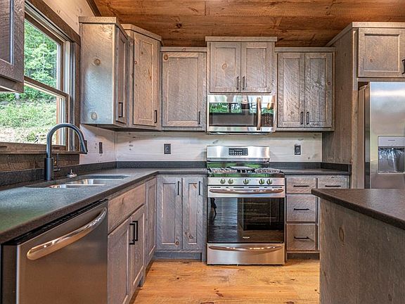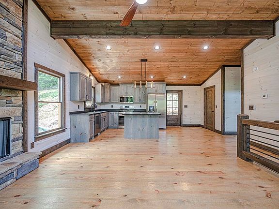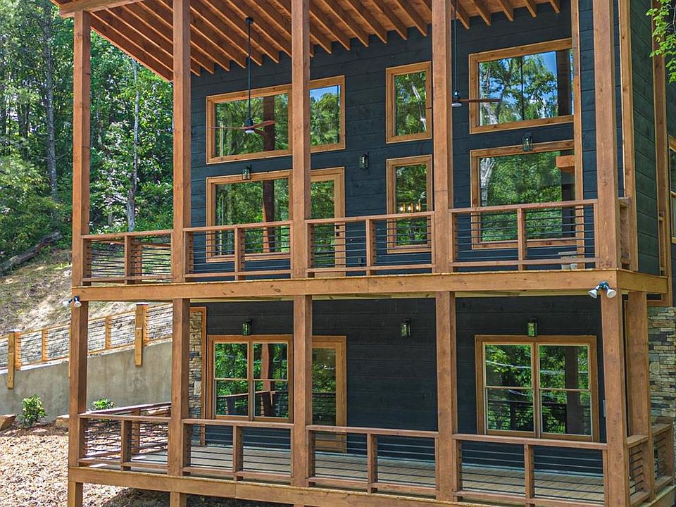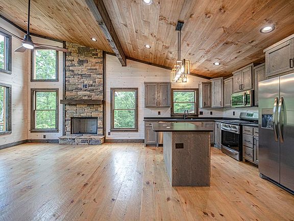 PRE-CONSTRUCTION (Photos Representative) Escape to the great outdoors to this modern rustic marvel nestled in the woods. Enjoy an open living concept with soaring ceilings providing ample space for entertaining or just to RELAX near the rock fireplace. Windows galore allow in great natural light and serene wooded mountain views. Master on Main with ensuite shared bathroom. Kitchen and Bathrooms are finished with custom cabinetry. Downstairs terrace level, enjoy additional living space complete with wet bar, rock fireplace, laundry and guest bedroom. Step out on upper deck with wood burning fireplace and soak in great mountain evenings surrounded by nature. Make this home yours today. STR allowed. Black Ankle Creek S/D.