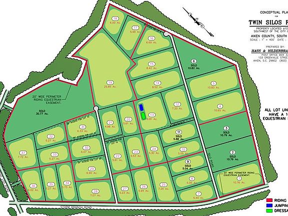 Loads of potential to build your dream home or equestrian paradise in Twin Silos Farms! The ideal location convenient to both Aiken and Augusta. PICK YOUR ACREAGE!! More than 200+ acres available (5 acre minimum). Lots starting at $8k/ac wooded & $10k/ac cleared and grassed. Common riding area with grass jump field and grass dressage arena. Amenities also include a picturesque network of walking and riding trails. HOA $750 per year. Minimal restrictions (see documents) - no mobile homes, fencing restrictions, etc. Don't miss this opportunity to be a part of this desirable location and growing community in Twin Silos Farms! *Survey & perc test at Buyers expense and responsibility.