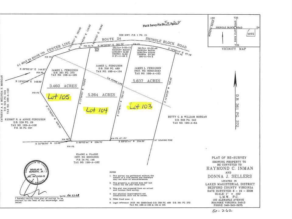 5.637 acres with 346' of road frontage on Route 24/Shingle Block Rd. Used as a hay field but could be potential home site or small homestead. Located conveniently to Bedford, Roanoke, Lynchburg, and Smith Mountain Lake. See photos for plat. Two additional neighboring lots available with MLS numbers 911462 & 911464. No soil work on file. Zoned AP, county restrictions apply. Property lines recently marked by surveyor.