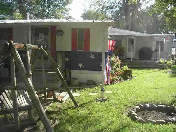 If you can't afford those lake homes! Here's away you can get onto Lake James Chain of 5 Lakes. Cute 2 Bedroom moblie In Hilltop co-op where all owners own the land together. You can enjoy the lake from your patio or swing that over looks Jimmerson Lake. Lakeside there's association area with table and chairs to enjoy the sun, swimming and boating. Enjoy the evenings sitting around the campfire. This home comes fully furnished ready to move in. Pontoon boat and golf cart are negotiable.