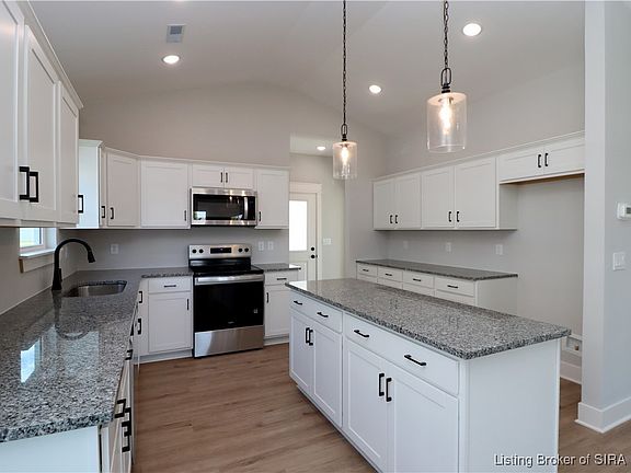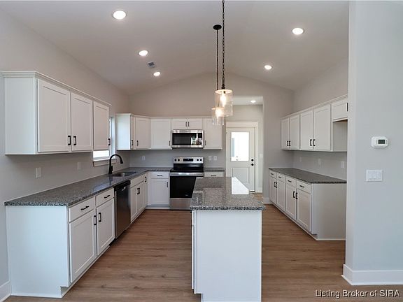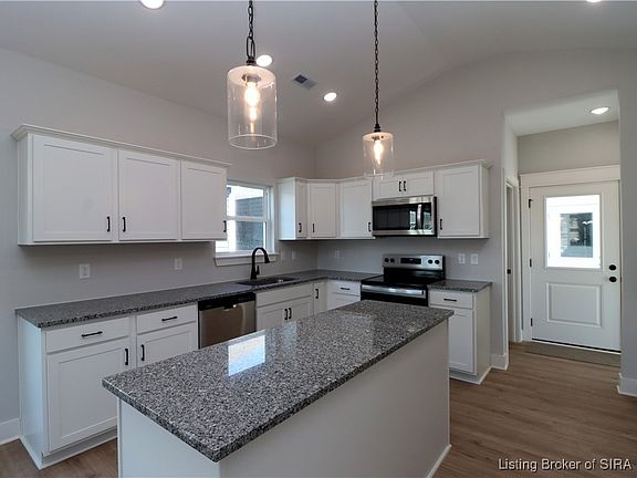 Premier Homes of Southern Indiana presents the beautiful 'Model E' floor plan! This 2 Bed/2 Bath cottage home features a covered front porch, vaulted ceilings, spacious great room, roomy dining area, open floor plan, and large back covered patio! Huge kitchen with stainless steel appliances, granite countertops, island, and large walk-in pantry. Primary suite offers an en-suite bath with pocket door, double vanity, water closet, built-in linen shelves, large walk-in shower, and spacious walk-in closet with washer/dryer hookups. This home also includes a 2 car detached garage w/keyless entry & a RWC home warranty!  Save $$$ toward closing costs by using one of our recommended lenders! Builder is a licensed real estate agent in the state of Indiana.