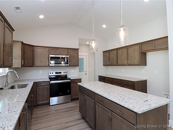 Premier Homes of Southern Indiana presents the beautiful 'Model E' floor plan! This 2 Bed/2 Bath cottage home features a covered front porch, vaulted ceilings, spacious great room, roomy dining area, open floor plan, and large back covered patio! Huge kitchen with stainless steel appliances, granite countertops, island, and large walk-in pantry. Primary suite offers an en-suite bath with pocket door, double vanity, water closet, built-in linen shelves, large walk-in shower, and spacious walk-in closet with washer/dryer hookups. This home also includes a 2 car detached garage w/keyless entry & a RWC home warranty!  Save $$$ toward closing costs by using one of our recommended lenders! Builder is a licensed real estate agent in the state of Indiana.