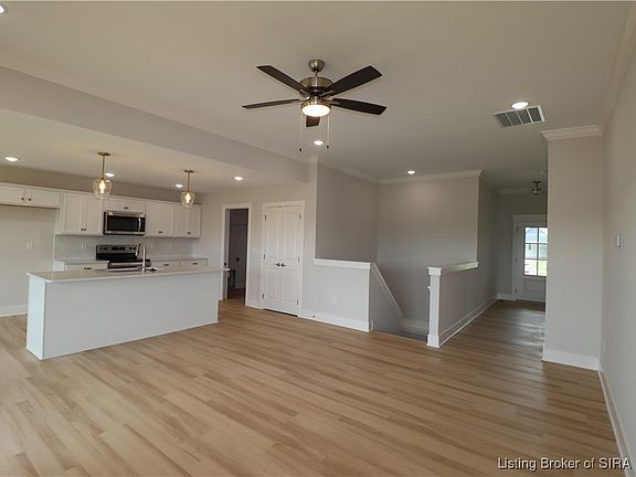 Premier Homes of Southern Indiana presents the spacious 'Juliana' floor plan! This 4 Bed/3 Bath home features a cozy covered front porch, foyer, open floor plan, laundry room with pocket door, and spacious great room that walks out to partially covered deck! The eat-in kitchen offers stainless steel appliances, Impact Quartz countertops, pantry, and roomy breakfast nook. Primary suite offers an elegant trey ceiling and en-suite bath with double vanity, water closet, large walk-in shower, and spacious walk-in closet. This home also includes a 2 car attached garage w/keyless entry & a 2-10 home warranty! The full, finished walkout basement features a large 4th bedroom, full bathroom, and huge family room that walks out to the back patio.