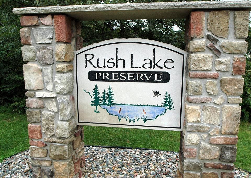 Affordable level building lot in the Rush Lake Preserve community which has an established low cost HOA that includes snow shoveling, mowing, and community irrigation hookup. This is 1 of 3 remaining lots with direct lake views. Quality standards in place. Listed lot size reflects the building pad for the home and patios. Common grounds include large center lot with gazebo, pond and waterfall, woods, lake views, and immediate Baxter bike trail access.