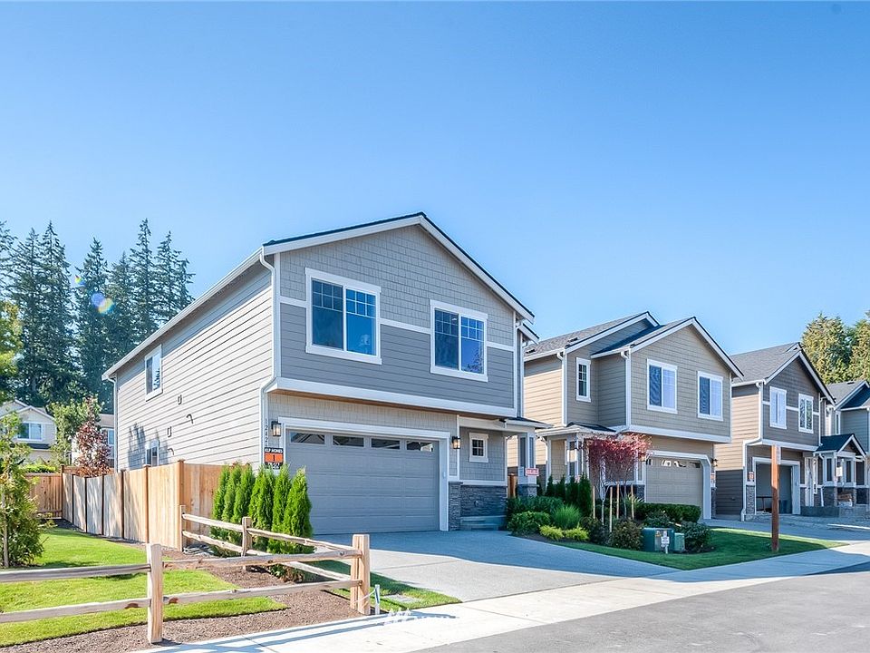 Huge Corner Lot with large Backyard!! Pratt Floor Plan Lot#8. 4 beds, 2.5 baths. Spacious kitchen, large pantry, custom island, hardwoods thru-out main, slab granite counters, & SS appliances. White painted Millwork package throughout. floor to ceiling stoned Gas Fireplace. Master w/ vaulted ceilings, walk-in closet, 5 piece bath, marble counters & marble slab panel in shower. Fully-fenced and Finished garages. Tankless H2O. Oct, 3rd Comp. 3 Miles away from Boeing. Detached Condos.