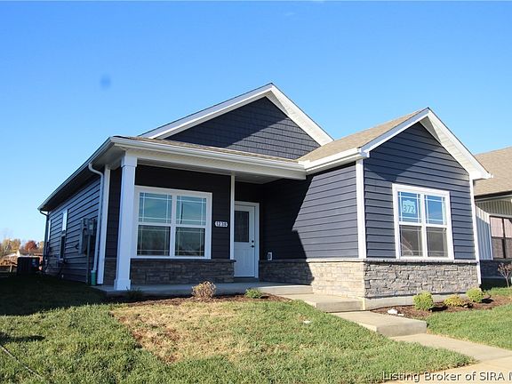 Pictures updated as of 7/21. Premier Homes of Southern Indiana presents the beautiful “Model F” floor plan! This gorgeous 2 Bed/2 Bath Cottage-style home features a covered front porch, spacious great room w/9’ ceilings, open floor plan, & split bedrooms. Beautiful eat-in kitchen w/9’ ceilings, stainless steel appliances, granite counter tops, & swinging door that leads out to the covered back patio, which is perfect for entertaining! Primary suite offers 9’ ceilings & primary bath w/pocket door, double vanity, water closet, large walk-in shower, & spacious walk-in closet. This home also includes a 2 car detached garage w/keyless entry & a 2-10 home warranty! Builder is a licensed real estate agent in the state of Indiana.