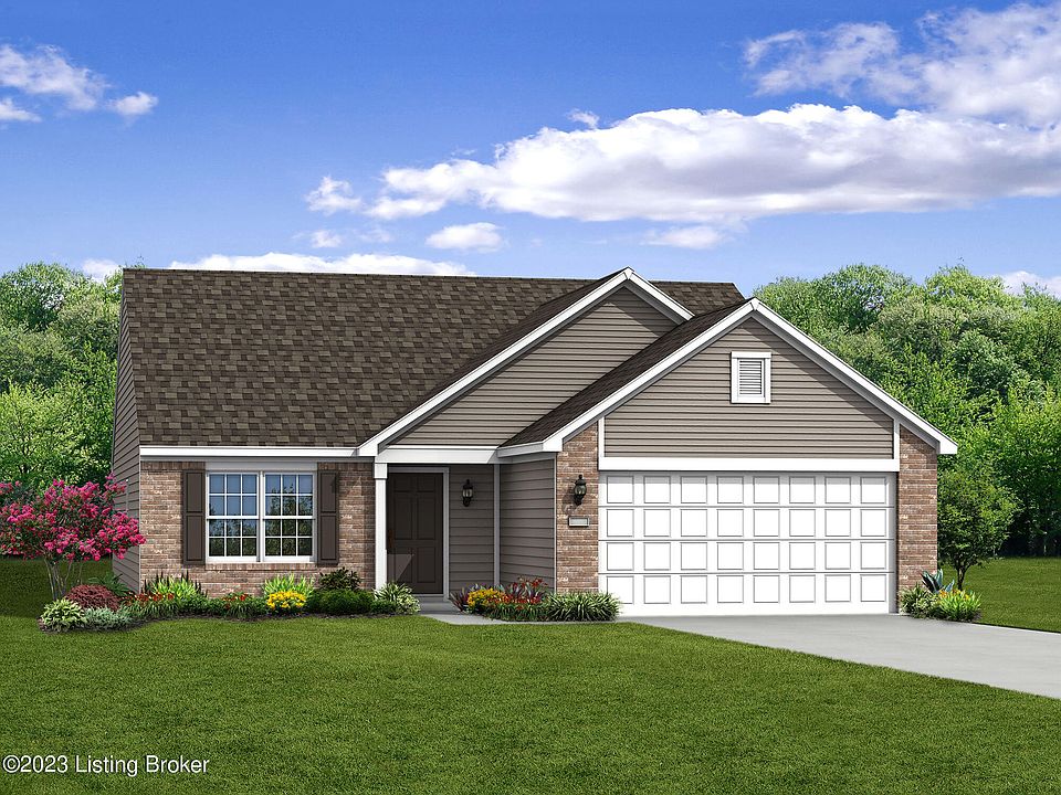 New construction ranch home with attached 2-car garage. Main level includes 9' ceilings, a vaulted ceiling in the great groom, and a single step tray ceiling in the primary bedroom. Open kitchen is perfect for entertaining. Featuring upgraded cabinets, an island, and stainless steel stove, microwave, and dishwasher. Beautiful granite countertops in the bathrooms and kitchen. Vinyl plank flooring in common areas will make cleaning a breeze! Two additional bedrooms share a bathroom. Laundry hookups are located in the utility room. Relax in the warm months on your back patio. This home is located just off of Shelbyville Road in a premier location. Don't wait, contact us today for your private tour.